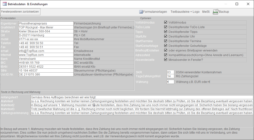 - Wenn Sie kein eigenes Briefpapier haben, erstellt unsere Physiotherapeuten Software Ihnen einen Briefbogen (siehe Abbildung unten).