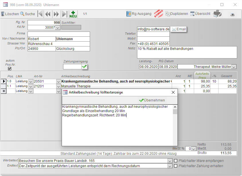 Erweiterte Möglichkeiten zur Patientenselektion in Physiotherapeuten Software Anwendungsbeispiel: